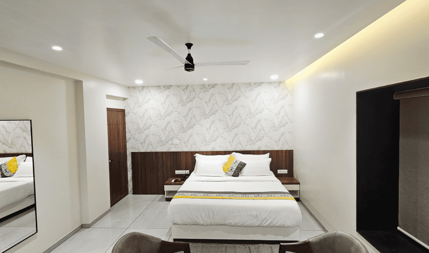 Designed with families in mind, the Junior Family Room includes one queen bed and a cozy single bed—perfect for up to three guests. Kids enjoy the warm, playful ambiance, while parents appreciate family-friendly amenities like a baby cot (on request), child-safe outlets, and spacious corridor area. Enjoy fast Wi-Fi, a flat-screen TV, and store refreshments in the mini-fridge (Chargeable). The modern bathroom equipped with premium toiletries ensures a comfortable stay.